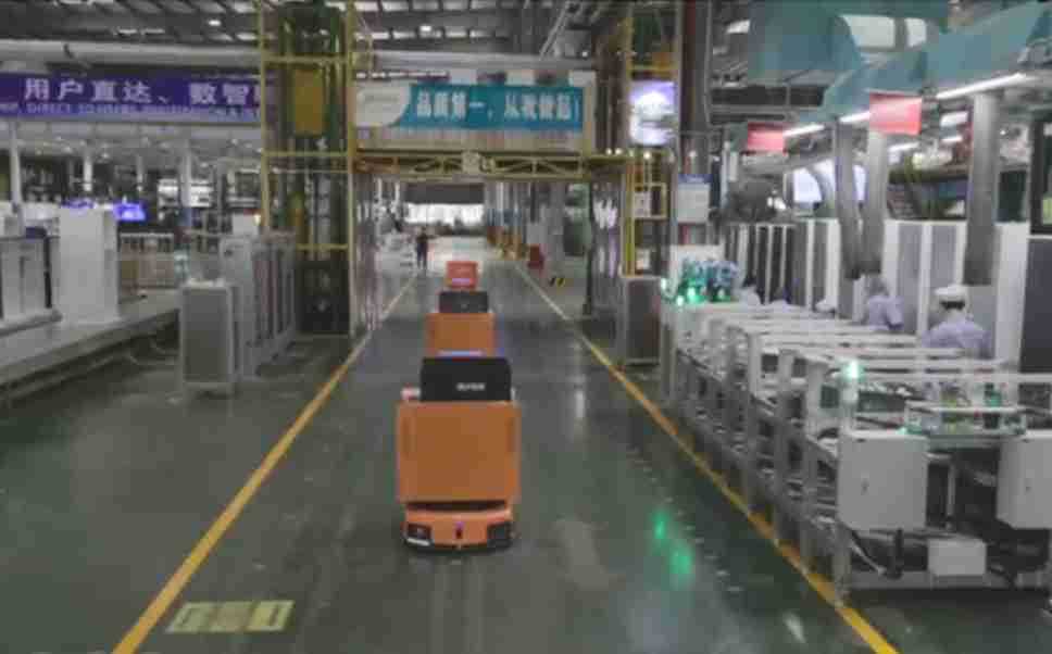为车载冰箱物流配送打造的智能解决方案,,包含产中物流通过潜伏举升AMR搬运至线边,,,产后成品物流智能仓储,,,流程包含产中物流智能齐套入库,,,线边安灯叫料AMR智能配送至线边,,,成品入库、、、出库,,通过无人堆高车机器人,,智能仓储管理替代人工作业管理,,,,实现更高存储、、更高效率、、、更具柔性化的解决方案。。